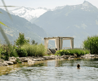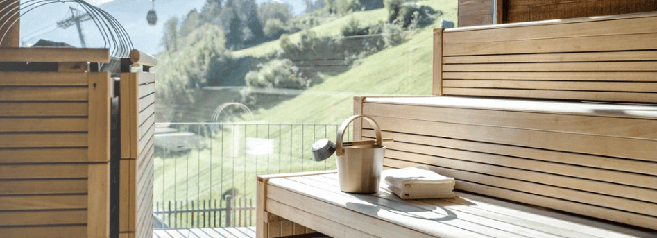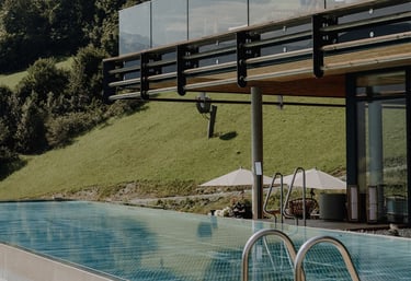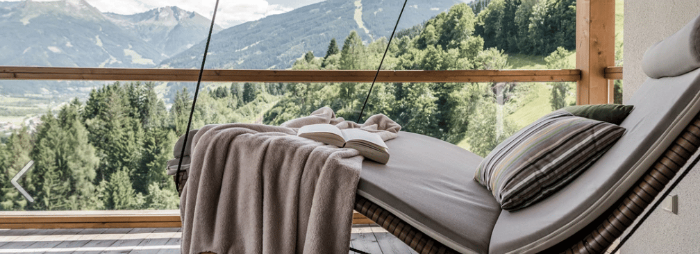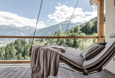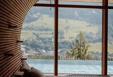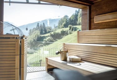1.500 m² Wellnessbereich mit spektakulärem Blick über das Gasteinertal.