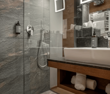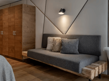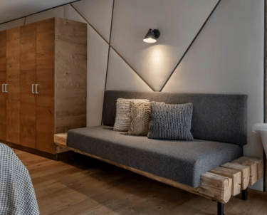 Das Studio S überzeugt mit stilvollem Design. Und ansprechendem Ambiente. Die großzügigen Balkone laden ein. Zum Frischluftschnuppern. Das Zimmer ist in südseitiger Lage (kein Talblick), im Winter mit direktem Blick auf die Skipiste. Ausgestattet mit einer gemütlichen Couchgarnitur lassen sich hier erholsame Stunden verbringen. Und das Badezimmer mit Regendusche sorgt für absolut erholsame, goldene Momente.