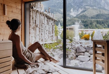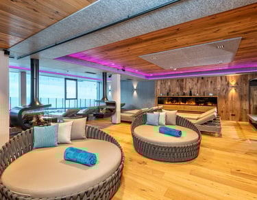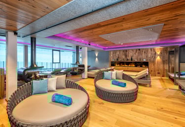 Zugang zum Mountain Spa, Pools, Saunen & Ruheräumen