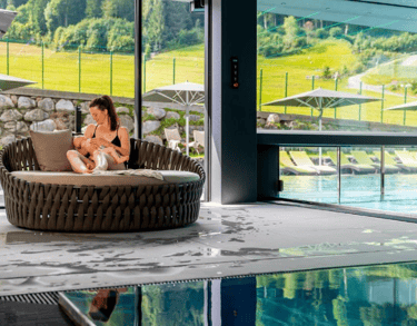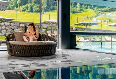 Mountain SPA (exklusiv für Erwachsene): mit ThermaLeogang: Leogangs erstem Thermalpool (Inneneinstieg, 20 m Länge), 6 verschiedenen Saunen & Schwitzattraktionen, Tauchbecken, traumhaften Themen-Ruheräumen, Kristall-Stein-Garten mit Ruhebereich & Kneipanlage