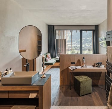 Alpines Wohlfühlnest, Urbanes Lifestyle & Design Hotel auf einem sonnigen Hügel bei Mayrhofen, mitten im Herzen der Zillertaler Alpen.