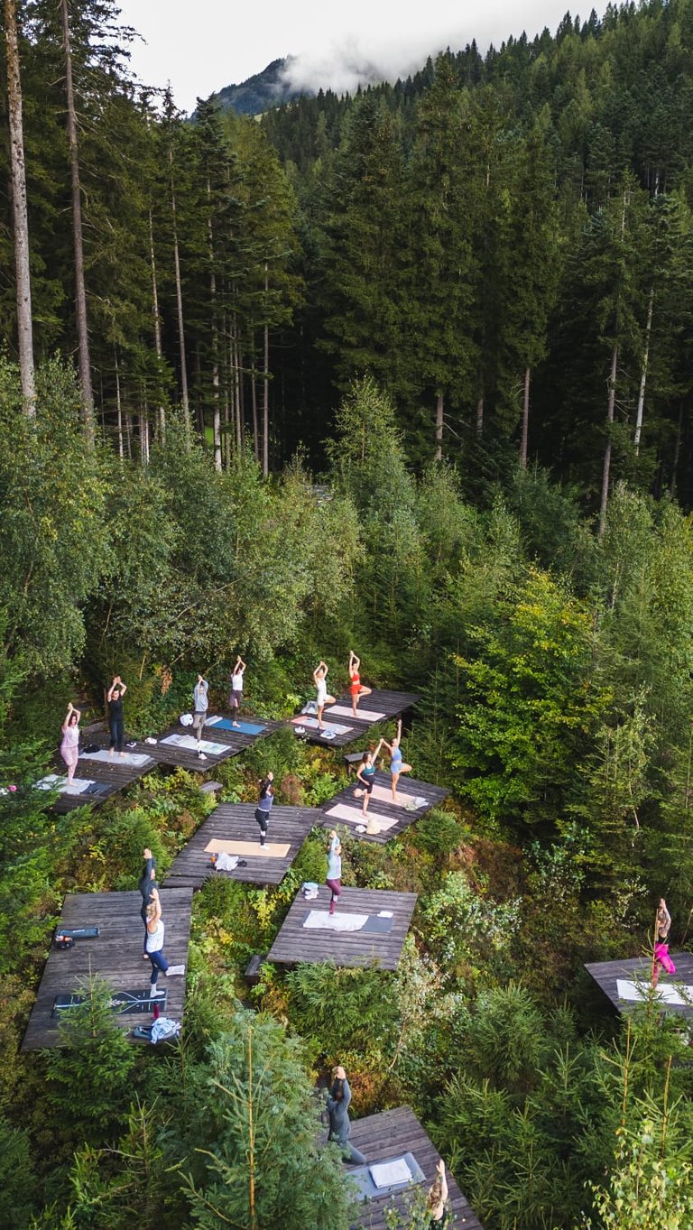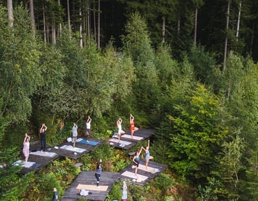 Du wirst alles finden, was du brauchst - kraftvolle Stunden, kreative Flows, Erholung, Ausgelassenheit, Stille und Natur pur! Umgeben von einer atemberaubenden Naturkulisse, genießen wir hauptsächlich Outdoor Yogastunden auf den wundervollen Yogaterrassen mitten im Wald atemberaubenden Ausblick.